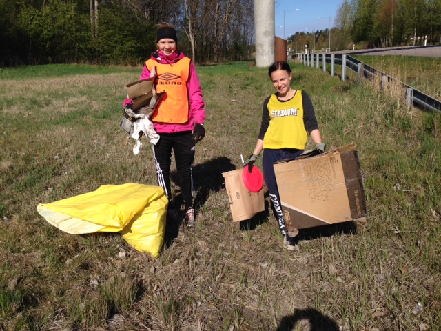 Vi hade fått uppdraget att städa väg 263 från infarten till Eurostop hela vägen till avfarten till Ekolsund, en sträcka på ca 20km. Vi var 30st tjejer, föräldrar och ledare som samlades 7.30 i Råbergshallen för att hämta sopsäckar och få sträckorna uppdelade mellan de 12 ”städlagen”. Efter fyra timmars intensivt plockande hade vi samlat ihop ca 130-140 säckar skräp, hittade mängder med flaskor, skräp från McDonalds, en överkörd katt samt en väska med plånbok där vi lyckades spåra en mycket nöjd ägare!