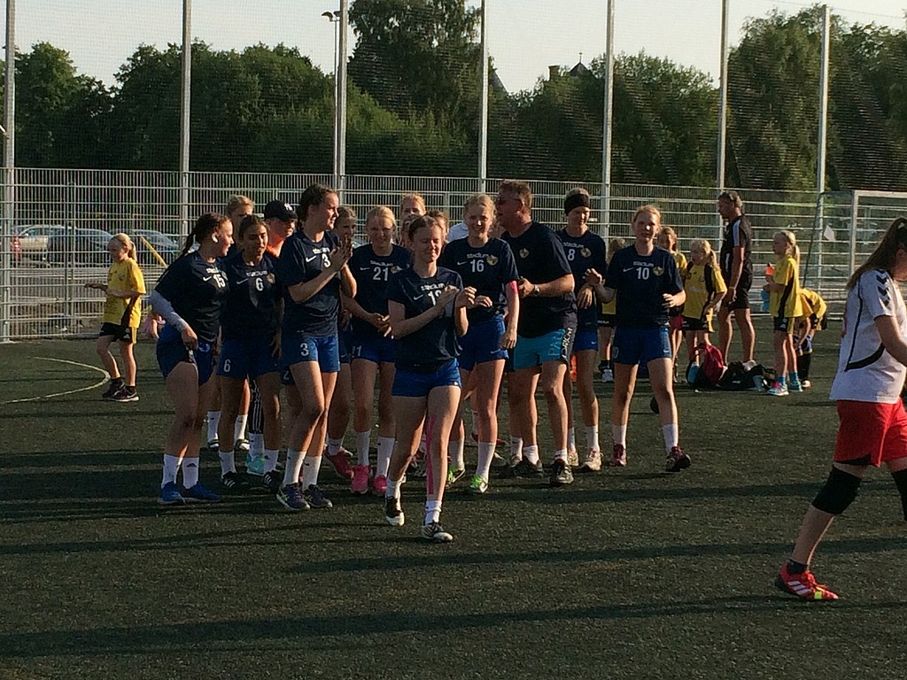 På ett kokande Kviberg så var det dax för 16 delsfinal mellan Rosersbergs IK- TV Cloppenburg från Tyskland. Rosersberg som gått som tåget dom senaste matcherna och verkligen ville till Heden på lördagen började i ett ursinnigt tempo. Fortsatt aggressivt försvarspel kombinerat med snabba omställningar resulterade att vi direkt fick ett försprång i protokollet, ett försprång som vi aldrig släppte utan vi spelade matchen igenom stabilt och säkert. I halvlek står det 7-3 och efter full tid 16-12 i Rosers favör. Nu får tjejerna vila hela kvällen/natten och nästa station för segertåget blir Heden 10 kl 10.50 lördag fm och för motståndet står Tveter HK 1. Samma förening som vi i 16 delsfinal mötte deras lag 2. Nu laddar fansen i Gbg för fullt och imorgon ska hela staden vara röd/vit/blå..."Rosers vi ger aldrig upp"