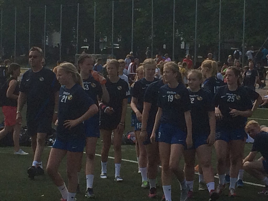 Så tog äventyret i Partille cup 2015 slut, kvartsfinalen mot norska Tveter 1 blev för tuff för oss. Vi startar matchen bra och får ledning med 6-4, men sen händer något och vi tappar greppet och norskorna går ifrån till 6-8 i halvtidsvila. Vi orkar/kan inte efter det ta oss tillbaka i matchen utan Tveter springer ifrån oss och när domaren blåser av är ställningen 10-16. Vi hade inte kraften, orken och farten att vinna idag men tjejerna har krigat på bra under hela veckan och vi tar med oss många positiva saker härifrån. Alla vi föräldrar tackar tjejerna och ledarna för en trevlig och spännande vecka och nu tar vi alla ett långt sommarlov .