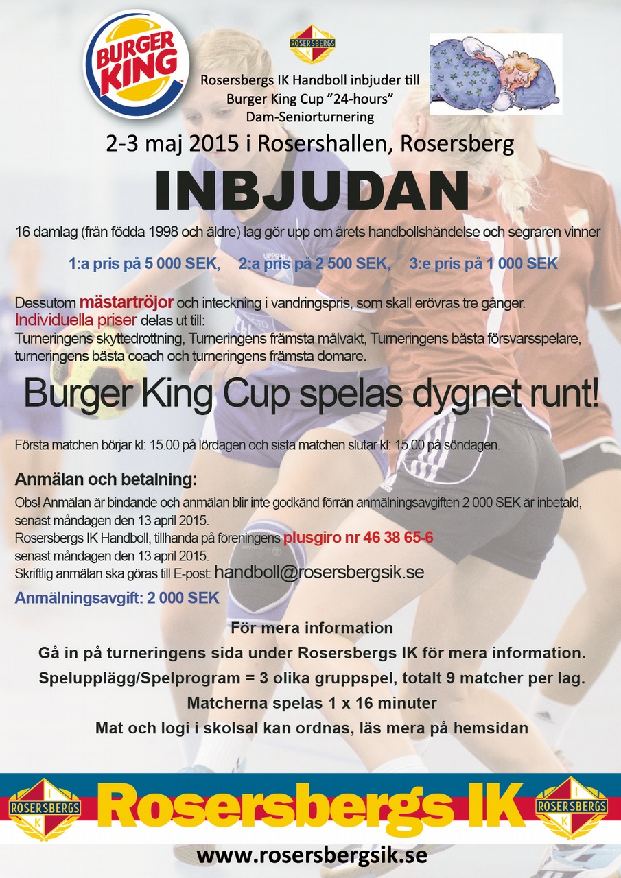 Rosersbergs IK Handboll välkomnar till Burger King Cup 24-hours i Rosershallen 2-3 maj 2015.