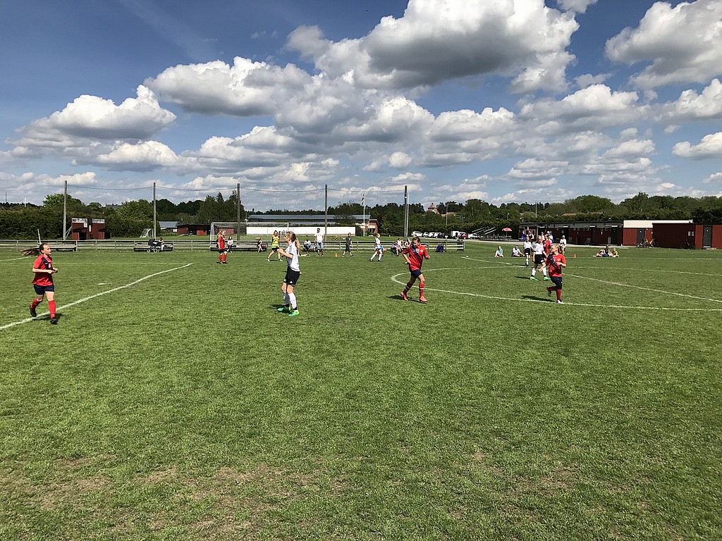 Matchen startade med lågt tempo och rätt mycket stillastående. Vet ej om tjejerna redan dagen innan börjat fira in vår nationaldag men det såg nästan så ut. Inte särskilt mycket målchanser på den hårda gräsmattan som troligen inte blivit vattnad på ett par veckor. Det var därför många som började titta på sina klockor och vänta ut första halvlek då Molli från ingenstans fick iväg ett långskott som letar sig in bakom Knivstas målvakt. 1-0 till Rosersberg med endast 5 sekunder kvar av halvleken.